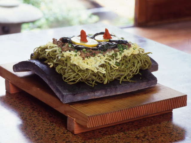 瓦そばは下関市豊浦町発祥のご当地グルメで、熱した瓦の上で茶そば・牛肉・錦糸卵を焼き、温かいだし汁で食べる香ばしさが魅力の人気料理です。