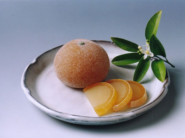 夏みかん菓子は萩市発祥の爽やかなスイーツで、酸味とほろ苦さが特徴。代表的な「夏みかん丸漬け」は、皮に羊羹を詰めた美しい伝統菓子です。