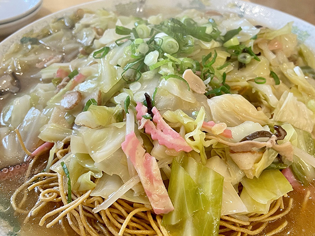 山口市発祥のご当地ラーメンで、豚骨スープに揚げ麺を合わせた香ばしさが魅力の一品。元祖は老舗「春来軒」で、食感の変化も楽しめる人気B級グルメです。