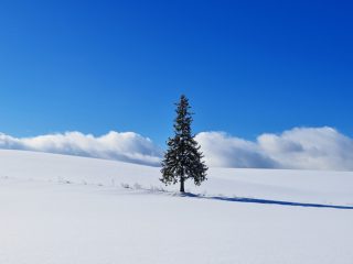 美瑛クリスマスツリーの木畑の中にポツンとある1本のトウヒの木。木の上部の枝振りが星の形に見えることから「クリスマスツリーの木」と呼ばれるようになりました。- 住所