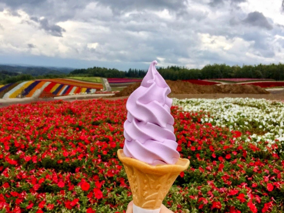 富良野と言えば「ラベンダー」。そのラベンダーエキスを使ったソフトクリームも人気。富良野でしか食べられない個性的な味。
