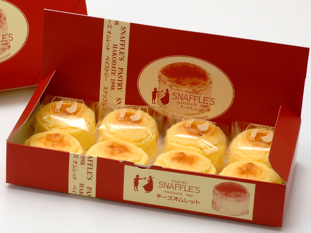 函館で人気「スナッフルスのチーズオムレット」。まるで半熟オムレツのように、とろけるような口溶けのスフレタイプのチーズオムレットは絶品です。