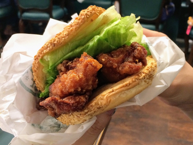 ラッキーピエロの人気No.1「チャイニーズチキンバーガー」。甘辛いソースのから揚げ、シャキシャキレタス、マヨネーズとそのバランスは絶妙。