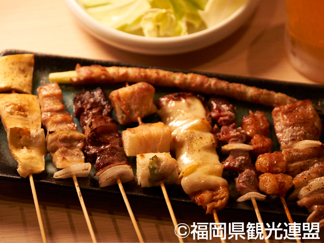 久留米市は、人口1万人あたりの焼鳥店数が日本一と言われています。つくね、地鶏のせせり、とり皮など豊富なメニューが「久留米やきとり」の魅力。
