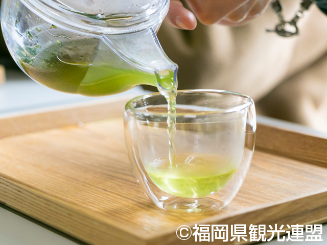 「八女茶」はあまくてコクがあり旨みが強い美味しいお茶。急須で淹れるとグリーンになるのが特徴。高級玉露の産地として知られている。
