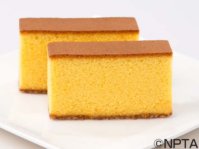 お土産に人気の「長崎カステラ」。甘みが強く食べ応えがあり、しっとりした生地とザラメの食感が人気。卵がたっぷりと入っていて、栄養価が高い。