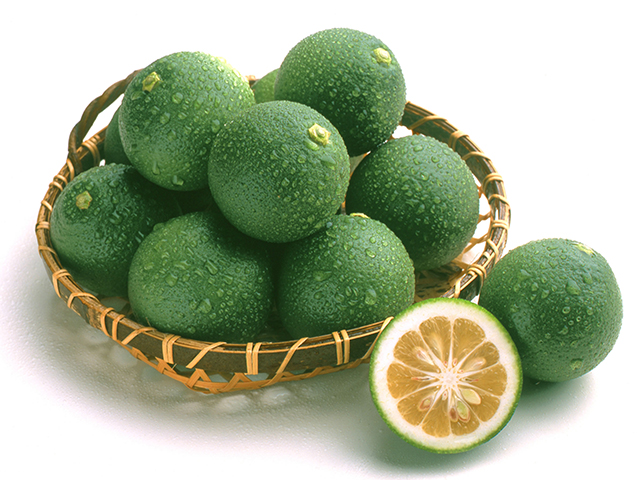 爽やかな芳香と強い酸味のあるカボスは、全国一の生産高を誇る大分の名産品。緑のカボスが一般的ですが、黄色に熟れたカボスも絶品。
