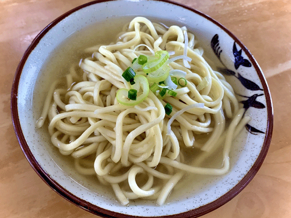 麺の上に刻みネギ以外は何も乗っていない、素うどんのようなシンプルな見た目をしているのが宮古そばの大きな特徴です。