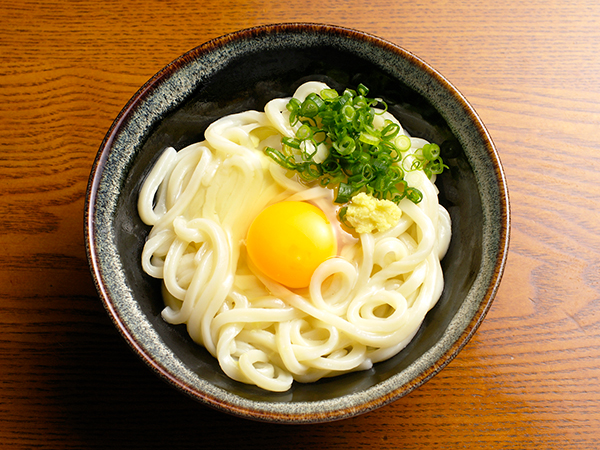 喉ごしの良さと、もちもちのコシが特徴。シンプルなかけうどんから人気の生醤油うどん、釜玉うどんなど多彩な食べ方が楽しめ、天ぷらやうどん出汁を使ったおでんも人気です。
