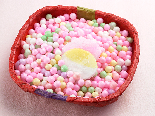 色とりどりの丸い粒が愛らしい見た目で、口に入れるとふわっと溶ける食感が魅力。瀬戸内地方では古くから嫁入り菓子として親しまれ、現在ではお土産としても人気です。